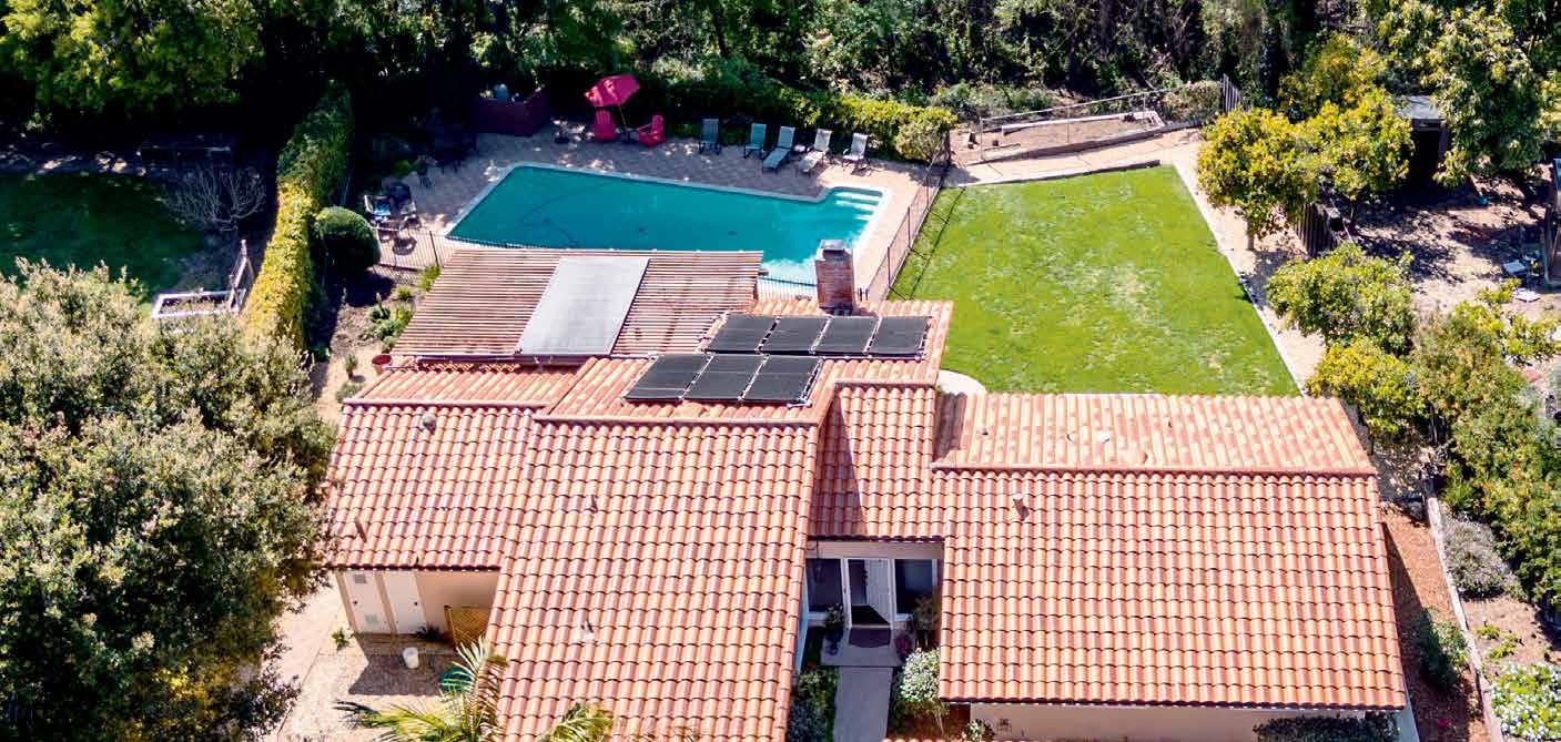 entertaining and enjoying outdoor family meals. The fully fenced 42 foot by 17 foot pool is delightful! The big grass yard is perfect for kids & pets. The property backs to a seasonal creek and then opens to 45 acres of avocado orchard. You will fall in love with this “off the beaten path” home in the quiet Goleta foothills. Another bonus is it is located in the highly coveted Mountain View School attendance area. Will you be the lucky new owner?