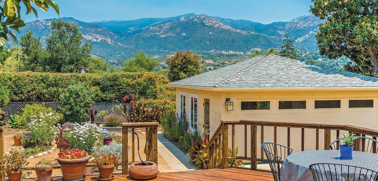The front and rear gardens are adorned with drought-tolerant plantings and fruit trees, providing a serene outdoor space. With expansion potential in the front yard, the property allows for future growth. The updated garage, with three windows, insulation, and drywall, holds potential as an ADU, office, or art studio. An accessory building offers ample storage space. Luxurious amenities include a heated floor in the full bath, solar panels, and a Tesla battery. Conveniently located near restaurants and shopping, this home is minutes from downtown Santa Barbara and the San Roque area. Experience charm, modern updates, and unbeatable views in this exceptional California cottage.
