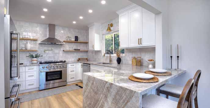 tile backsplash. The primary bathroom was simultaneously updated using the same materials for a consistent flow throughout the home. Additionally, a very convenient powder bathroom was installed near the living area, ideal for guests to use when entertaining. The owners took it a step further during this remodel and improved the home’s infrastructure with updated plumbing, sewer, heating, and electrical. There is an attached 2-car garage for parking or storage plus space for two cars on the driveway. Other notable features include: tankless water heater, in-home washer/dryer set, central forced air heating, recessed lighting, and gorgeous white oak hardwood floors. Located in the desired Washington Elementary School District and less than 1 mile from Lazy Acres Natural Market, Lighthouse Coffee, Shoreline Park, and Leadbetter Beach.