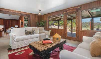 This rare Rustic California Ranch-style estate rests on a private 1.2-acre cul-de-sac parcel surrounded by majestic oaks and a producing avocado orchard. The 4-bedroom, 3-bath main residence blends timeless character with thoughtful updates, featuring a cozy living room with fireplace, a wood-paneled family room with patio access, a vaulted dining room, and an updated kitchen with rich wood cabinetry, granite counters, and high-end appliances.