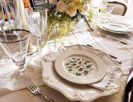 A few years ago, I took a flower-arranging class, and it changed my life. Just a few simple skills, and centerpieces look like they came from the florist. The centerpiece is your table’s focal point, but it shouldn’t obstruct conversation. The key is low height and visual flow. Combine elements such as foliage, candles, garlands, or sculptural bowls. For a nature-inspired look, arrange evergreen branches, pinecones, and subtle florals along the center of the table. Add unscented candles (scented can conflict with food!)
