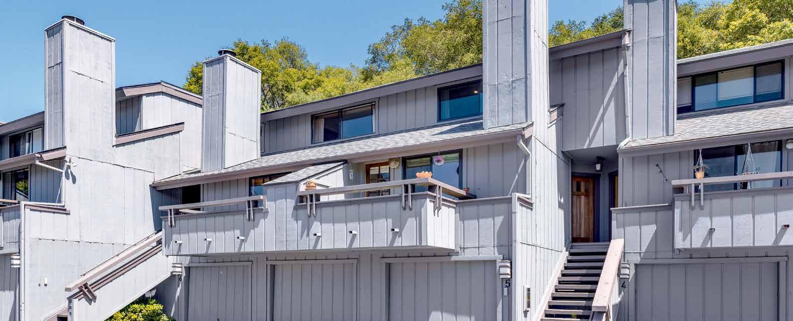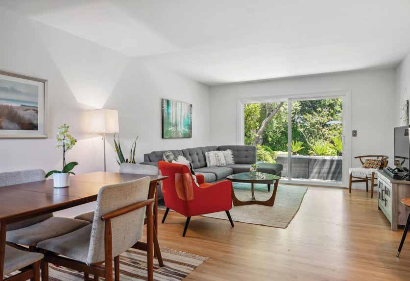 FREESTANDING condo is set well off the street within a charming 3-unit HOA. This “condo’’ lives more like a single-family home with no shared walls, a private backyard patio, and an attached 2-car garage. Through the front door is a light and airy living space with high vaulted ceilings and french doors that open to the fully enclosed patio. Just