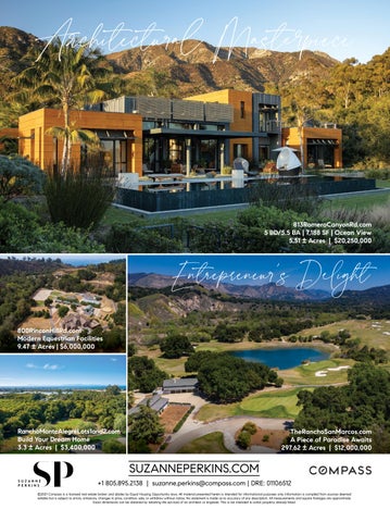 SUZANNEPERKINS.COM +1 805.895.2138 | suzanne.perkins@compass.com | DRE: 01106512 ©2021 Compass is a licensed real estate broker and abides by Equal Housing Opportunity laws. All material presented herein is intended for informational purposes only. Information is compiled from sources deemed reliable but is subject to errors, omissions, changes in price, condition, sale, or withdraw without notice. No statement is made as to accuracy of any description. All measurements and square footages are approximate. Exact dimensions can be obtained by retaining the services of an architect or engineer. This is not intended to solicit property already listed.