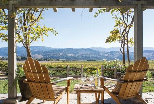 Barrels form a bar backdrop at the Tierra y Vino tasting room; a Santa Ynez vista at the vineyard; Rideau’s new book; setting the scene for an alfresco dinner. OPPOSITE: Tasting-room temptations include an array of vintages and varieties.