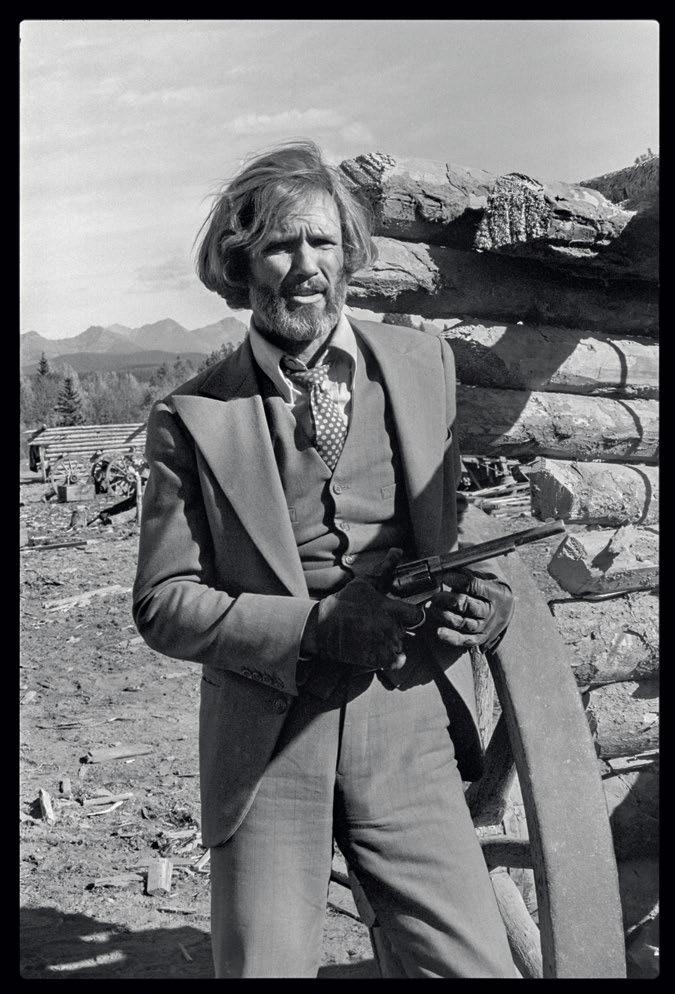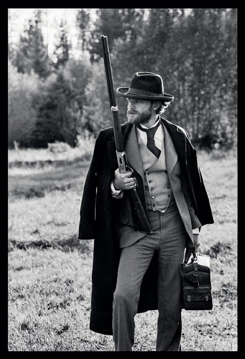 HISTORICALLY AUTHENTIC GARB FOR A WIDE RANGE OF CHARACTERS—FROM TOWNSPEOPLE TO RECENT IMMIGRANTS— HELPED ESTABLISH THE PERIOD LOOK OF CIMINO’S MOVIE. FROM TOP: Kris Kristofferson played Federal Marshal James Averill; Jeff’s parents, Dorothy and Lloyd Bridges, came for a visit and were dressed by wardrobe to match the ambience. OPPOSITE, CLOCKWISE FROM TOP: Bridges, as John L. Bridges, rides a horse named Dude; actor Brad Dourif as Mr. Eggleston; Jarlath Conroy portrayed a mercenary in a new suit.