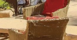 The enormous red Adirondack chair fronting WILLIAM LAMAN FURNITURE GARDEN