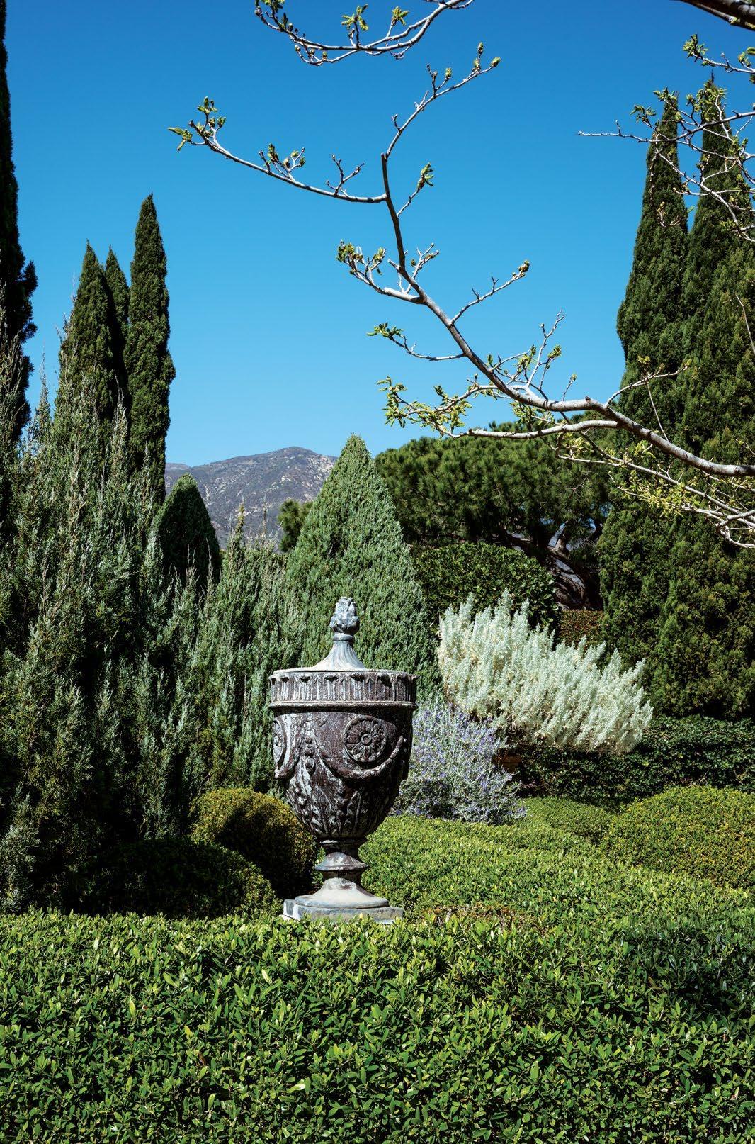 Saladino placed an 18thcentury English lead urn at the center of his backyard.