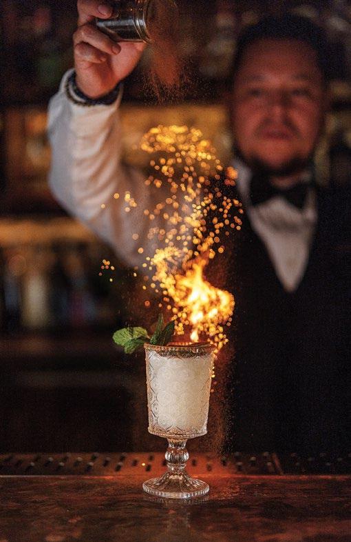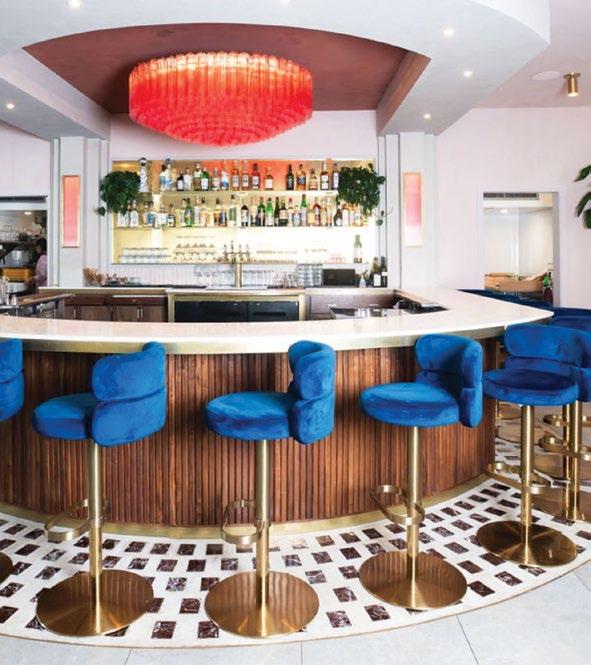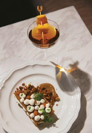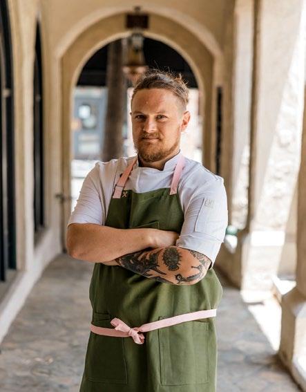 refreshingly unstuffy, tasting-menu journey, along with other ways to enjoy the venue. A takeaway window serves Valencia-style coca flatbreads under the This Is Not Pizza banner by day. The Lumpsucker cocktail experience begins around the time Ojai’s famed Pink Moment bathes the Topatopa Mountains in a rosy glow.