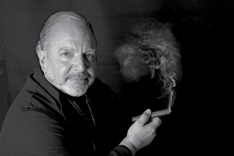 A portrait of the designer with a favorite roman column in a landscape he designed.