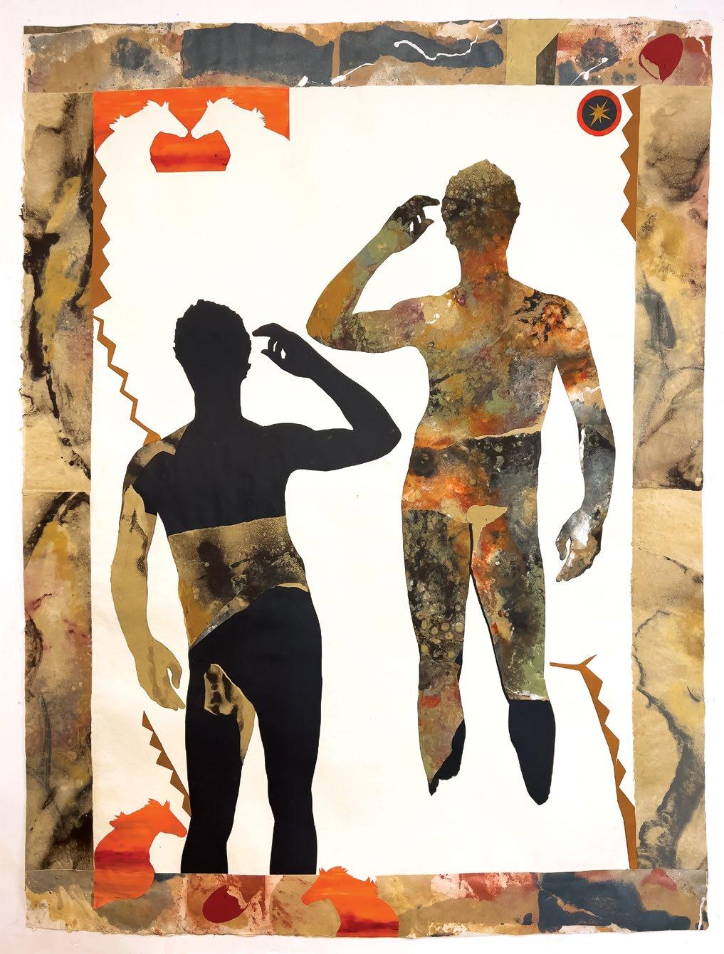 OPPOSITE: Heebner’s new artist’s book, Mythos Quartet , interprets ancient myths, including that of Castor and Pollux, which she illustrated with Cut-Ups: Brother Love/Dioskouri