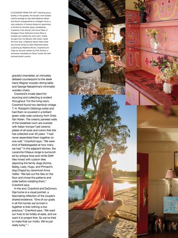 Our cover story sets us among the Ojai orchards and Pink Moment mountains with Anne Crawford and her husband, Dudley DeZonia. Crawford has always been the epitome of chic, and she has floated among the artistic, fashionable crowd for decades.