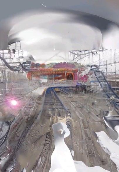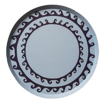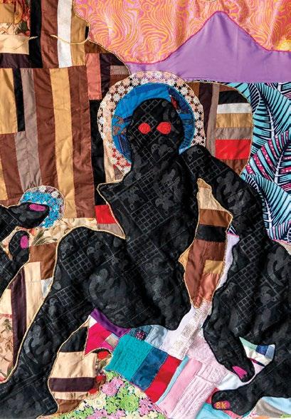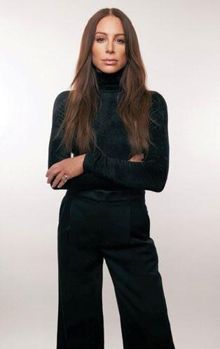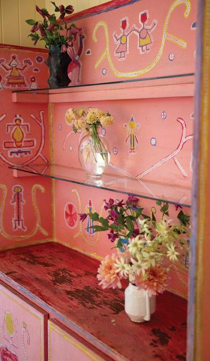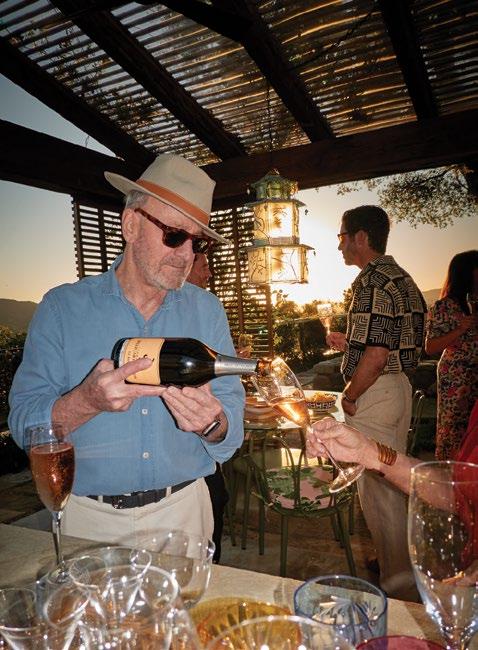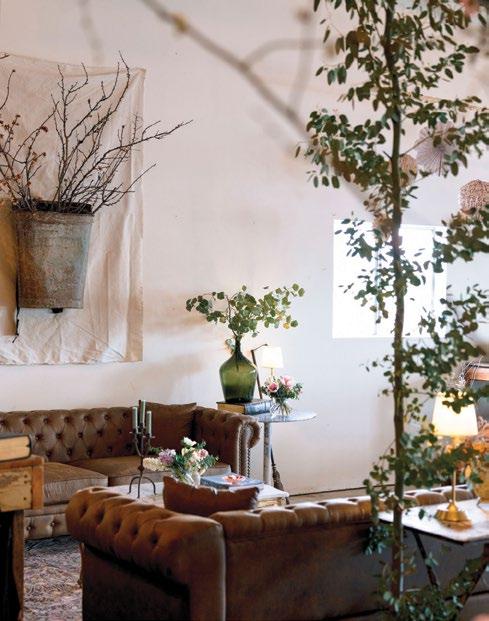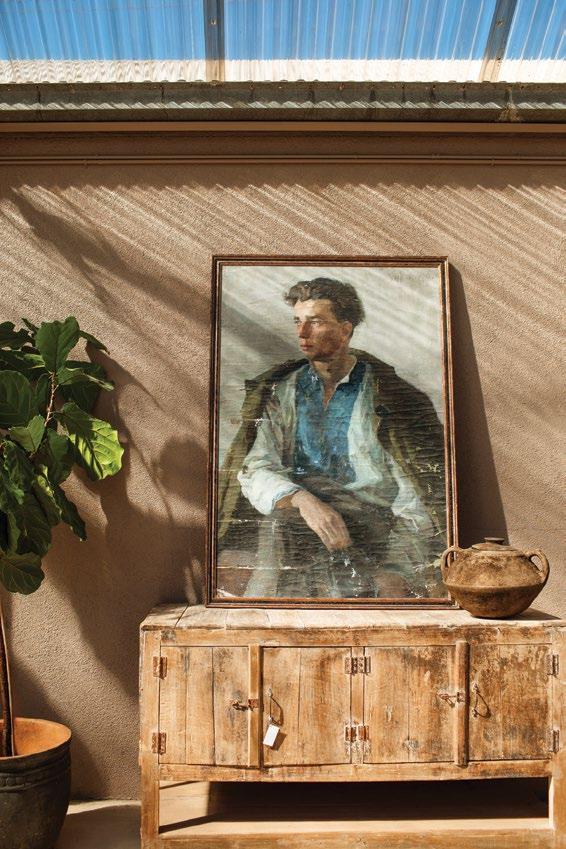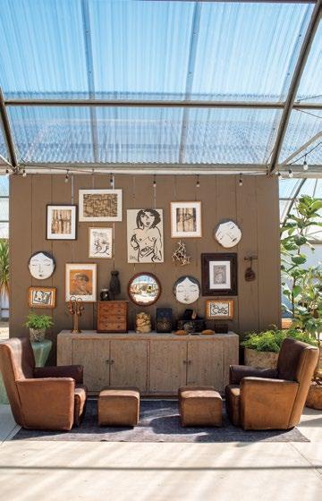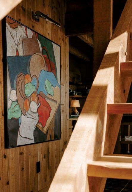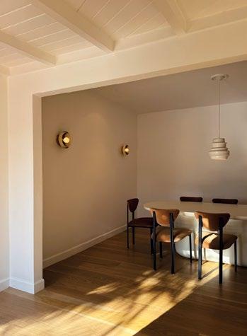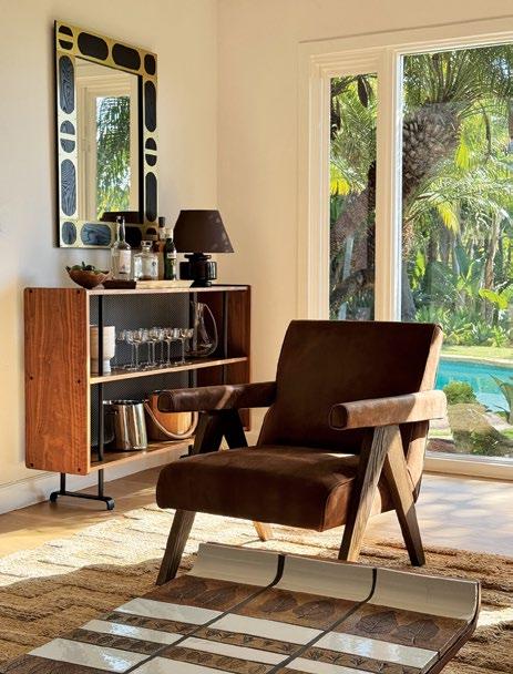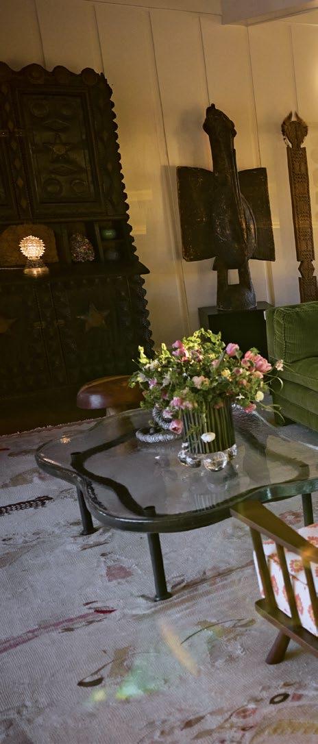 art, which she collects with assistance from Sadie Kirshman at The Pit gallery in Los Angeles. Coveted works include pieces by French photographer–street artist JR, Haitian American painter Patrick Eugène, and Canadian artist Annie Hémond Hotte, whose painting anchors the dining room. The circular dining table was inspired by a special dinner at the San Ysidro Ranch. “There were eight of us,” Ashley says, “and it was the perfect conversation. There weren’t any side conversations. I really like a round table; it encourages everybody to have one conversation.” Armed with a tape measure, she returned to the ranch the next day, and Madeline had the table custom made to those dimensions and then also designed the chairs. There’s only one catch, Ashley says: “Every time I have a dinner party, I’m like, Well, darn, I can only have eight people!” •