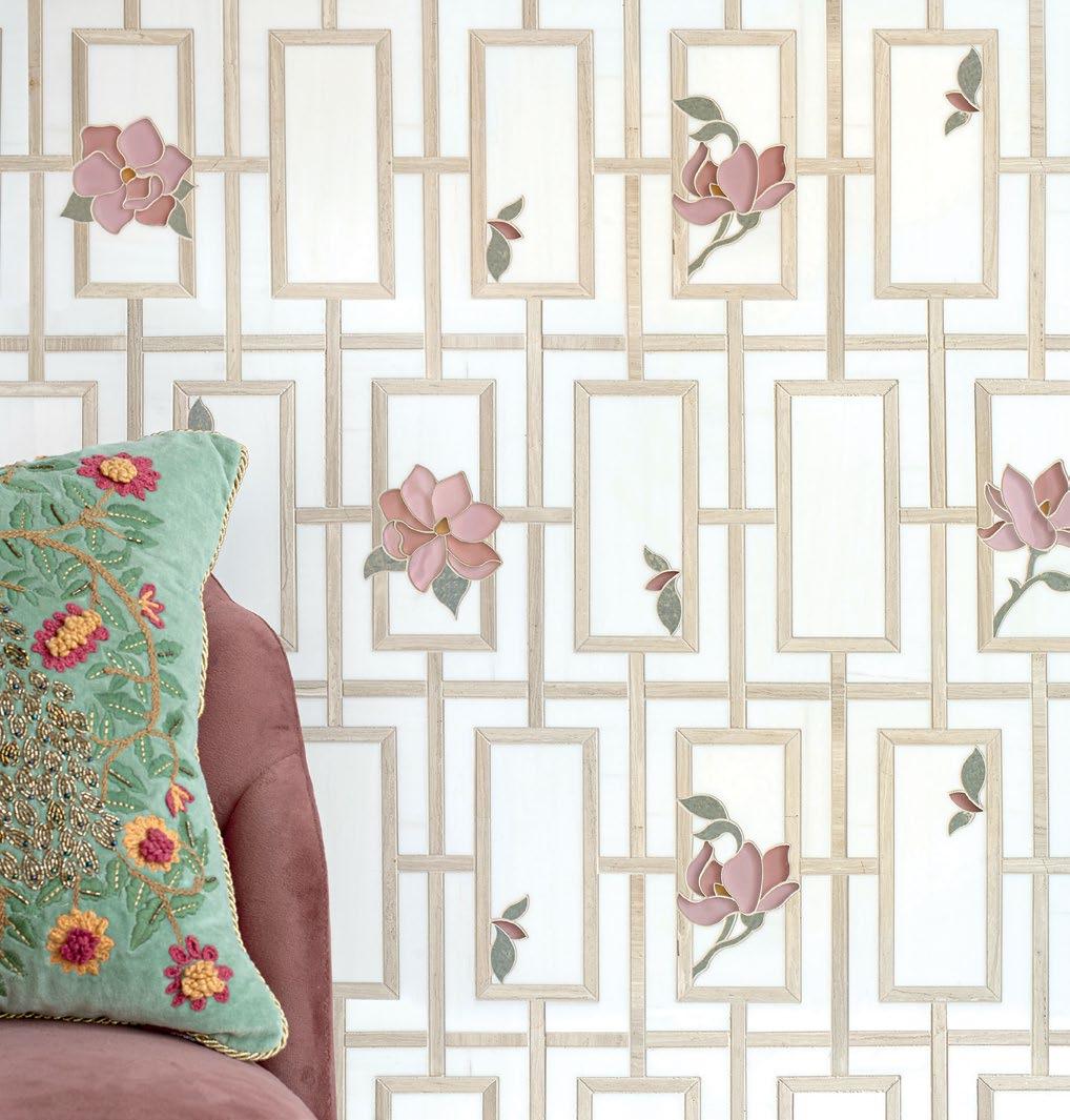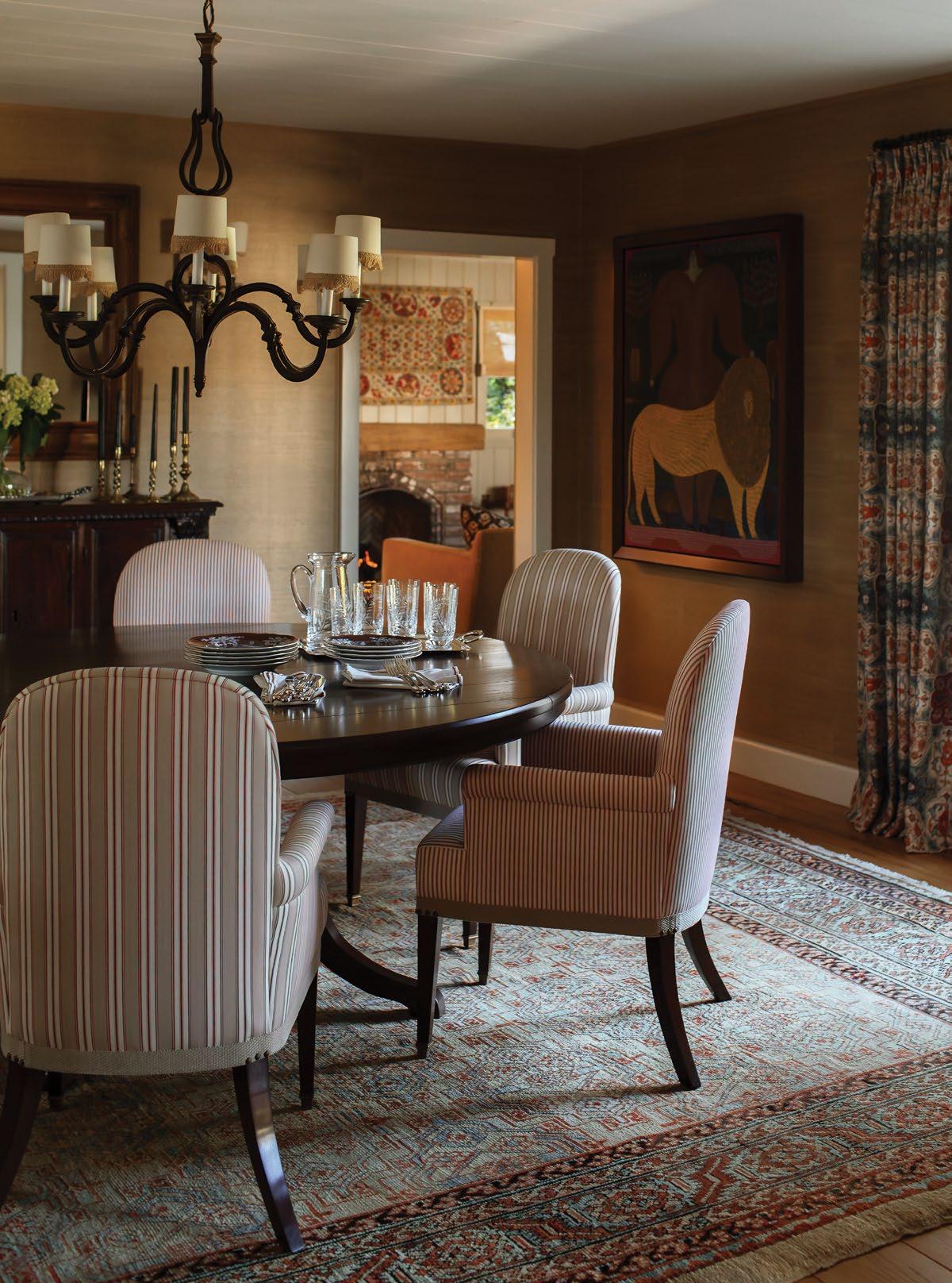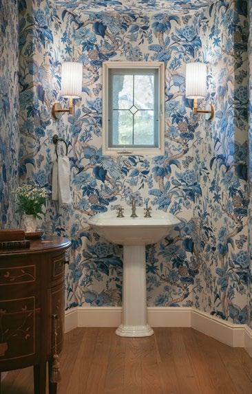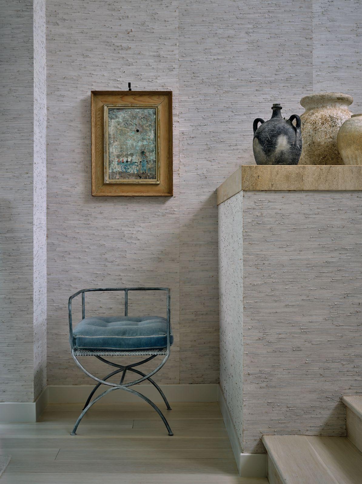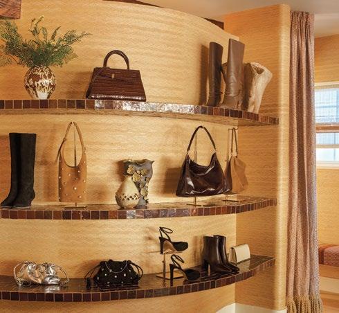 less traditional look. OPPOSITE: Marks added texture throughout the home by using a Phillip Jeffries grass cloth wall covering.