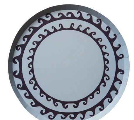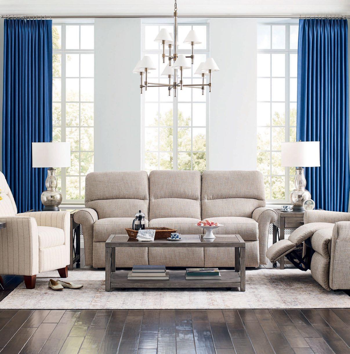 Akari spherical lantern light overhead and the warm touch of blue custom couch fabrics by Sunbrella.