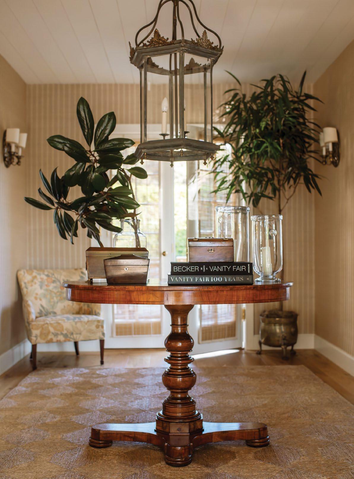 The room also has a wonderful view of the garden, planted with a serene combination of gardenia and camellia plants. The latter have been a point of concern—and source of humor—for Ashley. “I kept calling Lisa Zeder, who designed the garden, and I was like, ‘The camellias, when are they going to bloom? You said they would bloom all year long.’ And she said, ‘Well, they take breaks.’ And I said, ‘All at the same time? Did they get together and have a meeting?’ ”