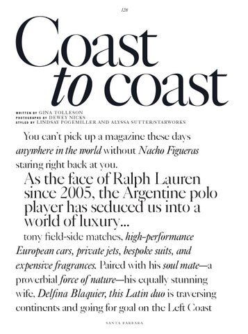 European cars, private jets, bespoke suits, and expensive fragrances. Paired with his soul mate—a proverbial force of nature—his equally stunning wife, Delfina Blaquier, this Latin duo is traversing continents and going for goal on the Left Coast S A N TA B A R B A R A