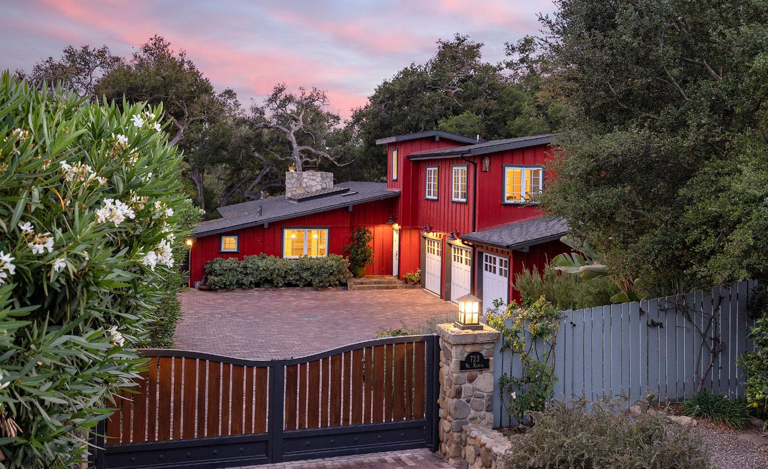 San Ysidro-style farmhouse with 1963 mid-century modern layout. Situat ed on a quiet cul-de-sac in a rural setting with a large oak-shaded garden and ocean views from the garden, this gorgeous and spacious two-story home features an open floor plan with cozy and contemporary interiors. Primary suites on each level, with four bedrooms and 3.5 baths, an artist’s studio, and beautiful gardens, this home is truly an exceptional offering.