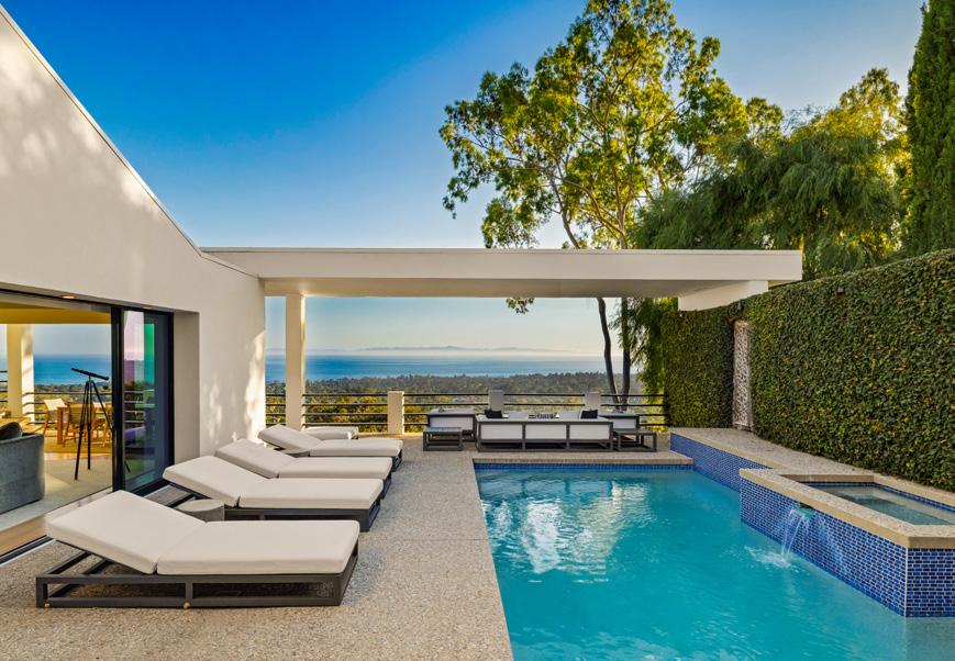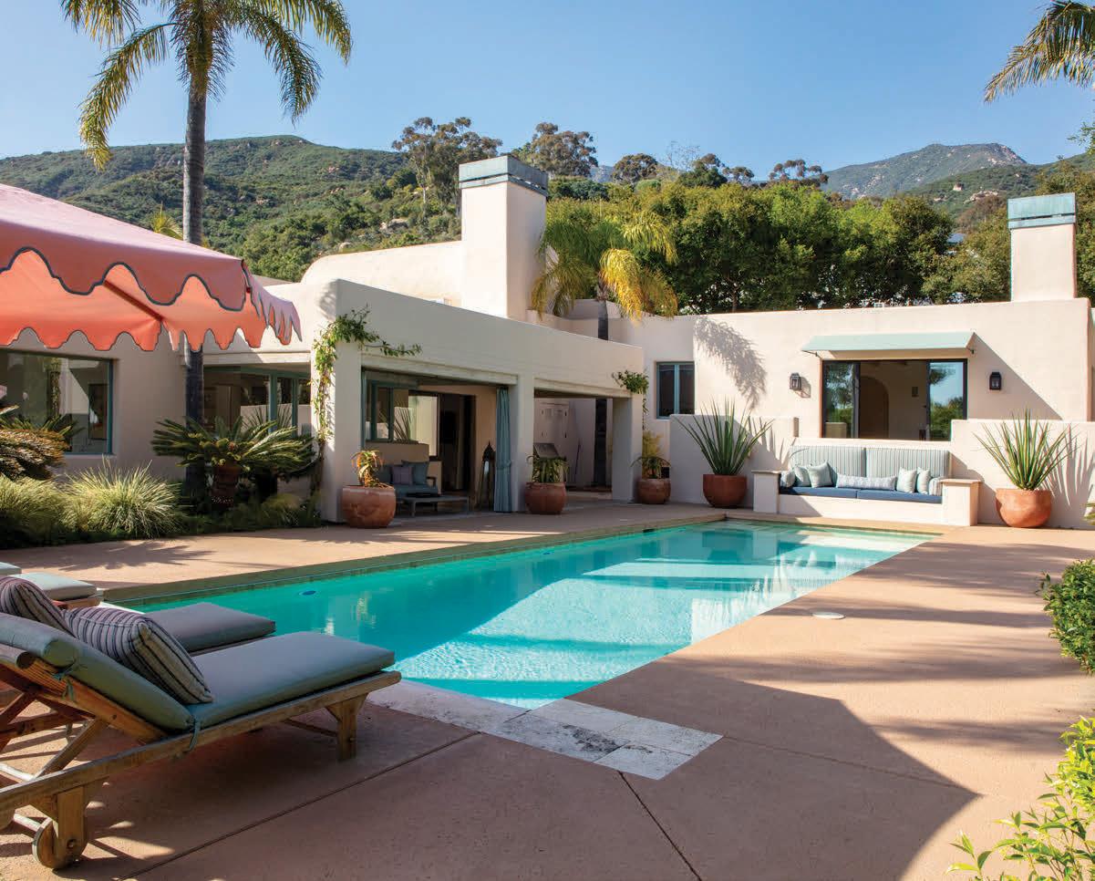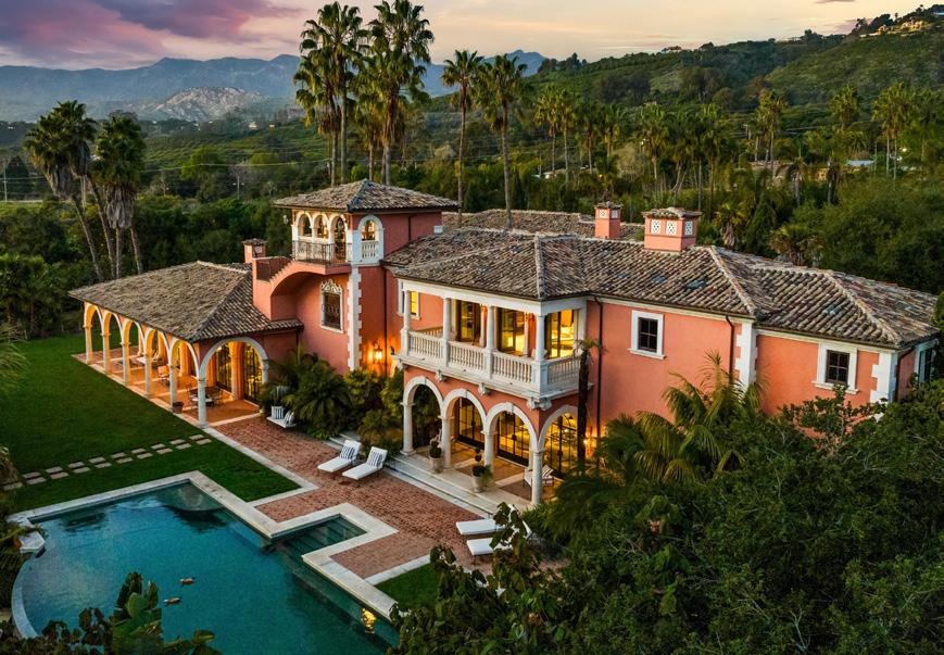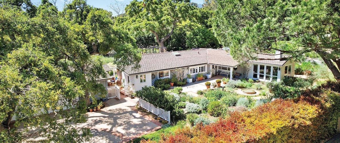 1586 San Leandro Lane – $8,950,000 – On a private 1.3-acre lot, this 4-bedroom, nearly 4,000 squarefoot, Spanish-style home offers a pool, mature gardens, off-street parking, and room for expanded exterior recreational and entertaining areas, all within the Montecito Union School District.