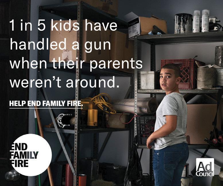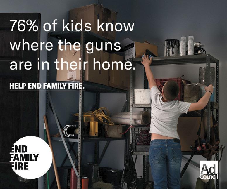 Brady: United Against Gun Violence unites people of all identities, races, and ethnicities from coast to coast, young and old, progressive and conservative, and everything in between, fed up and fired up, to protect our country from what is killing it: guns P. 40