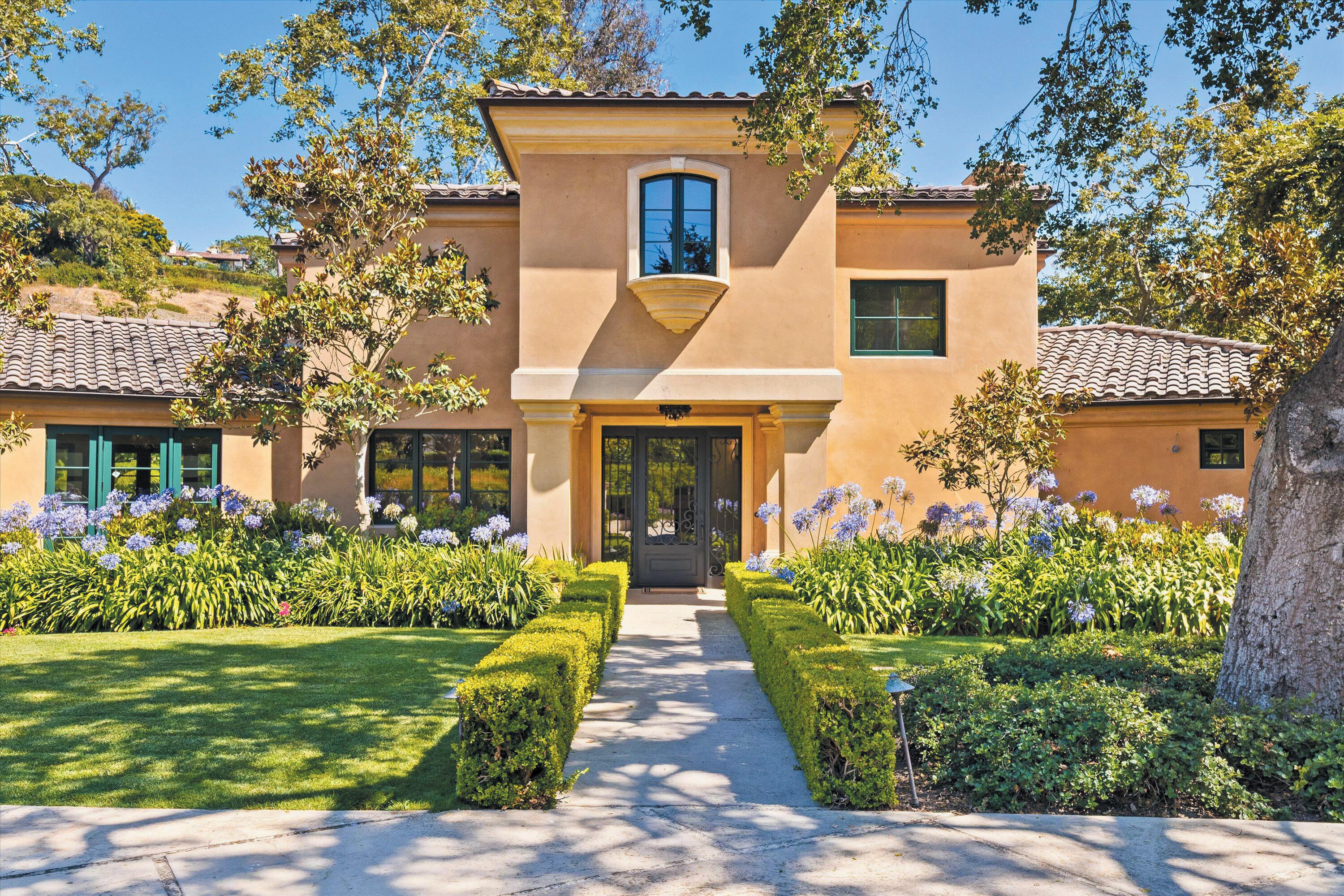 Tucked into one of Montecito's most tranquil enclaves, this elegant Mediterranean residence offers 4 bedrooms and 4 bathrooms on nearly an acre of lavishly landscaped grounds framed by mature oaks and sycamores. The peaceful setting and grand scale of the estate offer quintessential California living just minutes from world-class beaches, dining, shopping, and nature trails. A thoughtfully designed floor plan connects generous interior spaces to a sprawling backyard made for effortless al fresco living. French doors throughout invite natural light and create seamless indoor-outdoor flow. Vaulted ceilings, multiple fireplaces, formal and casual living areas, and an expansive outdoor space perfect for entertaining — this is a great opportunity that blends privacy, design, and location.