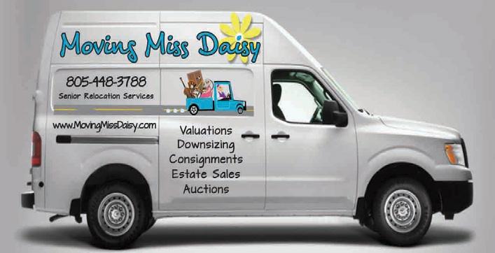 Full Service SAFE Senior Relocation and Estate Liquidation Services Including: Packing and Unpacking, Estate Sales, Online Auctions and our own Consignment Shop! We are Licensed, Bonded, Liability Insured, Workers Comped, Certified by The National Assoc Of Senior Move Managers (NASMM) and The American Society of Estate Liquidators (ASEL). Glenn Novack, Owner. 805-770-7715 info@movingmissdaisy.com MovingMissDaisy.com Consignments@MovingMissDaisy.hibid.com
