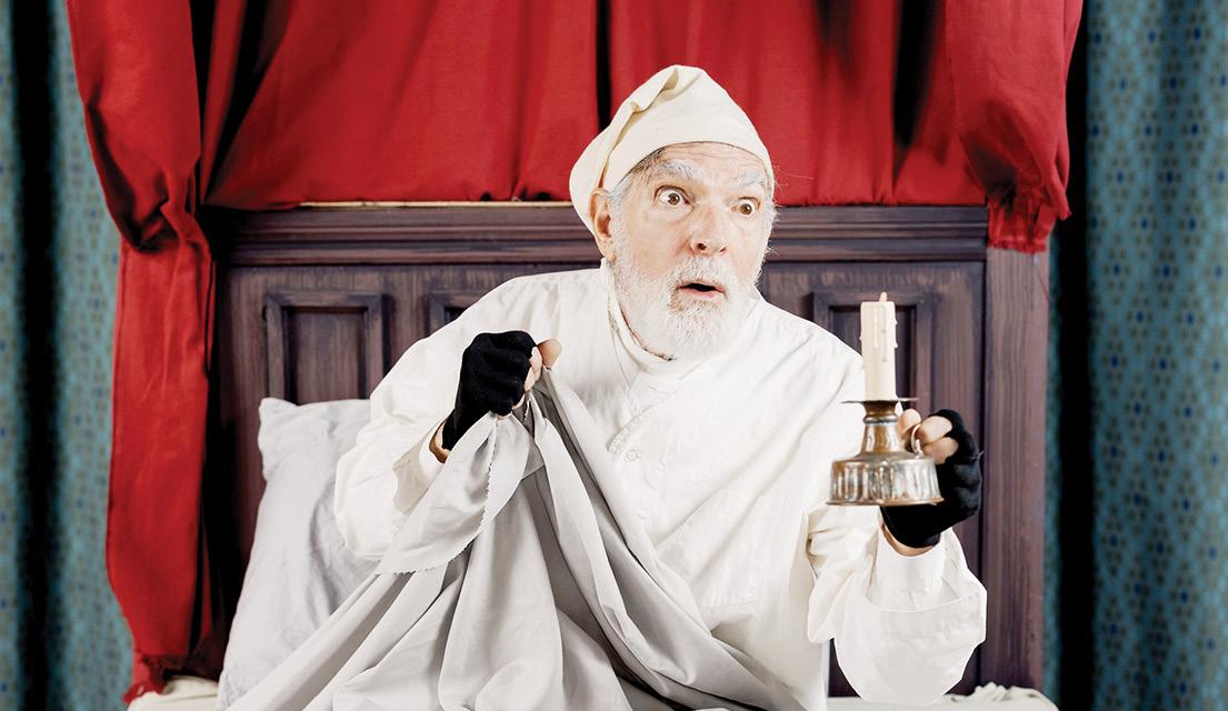 Mark Capri stars as Ebenezer Scrooge in ETC’s produc tion of A Christmas Carol (photo by Zach Mendez)