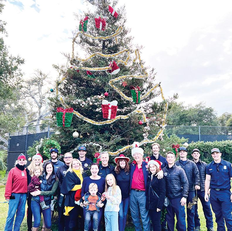 As the story goes, in the early 1960s, then Montecito Fire Chief Don Hathaway and his wife, Helen, and children Dean and Ronda, would rise in the middle of the night each December to conduct a super-secret mission: to decorate the Monterey Pine tree at the corner of San Ysidro Road and Highway 101, which at the time was only about seven feet tall. Montecito residents would awake to find the tree decked out in garland and ornaments, wondering who among them had decorated it.