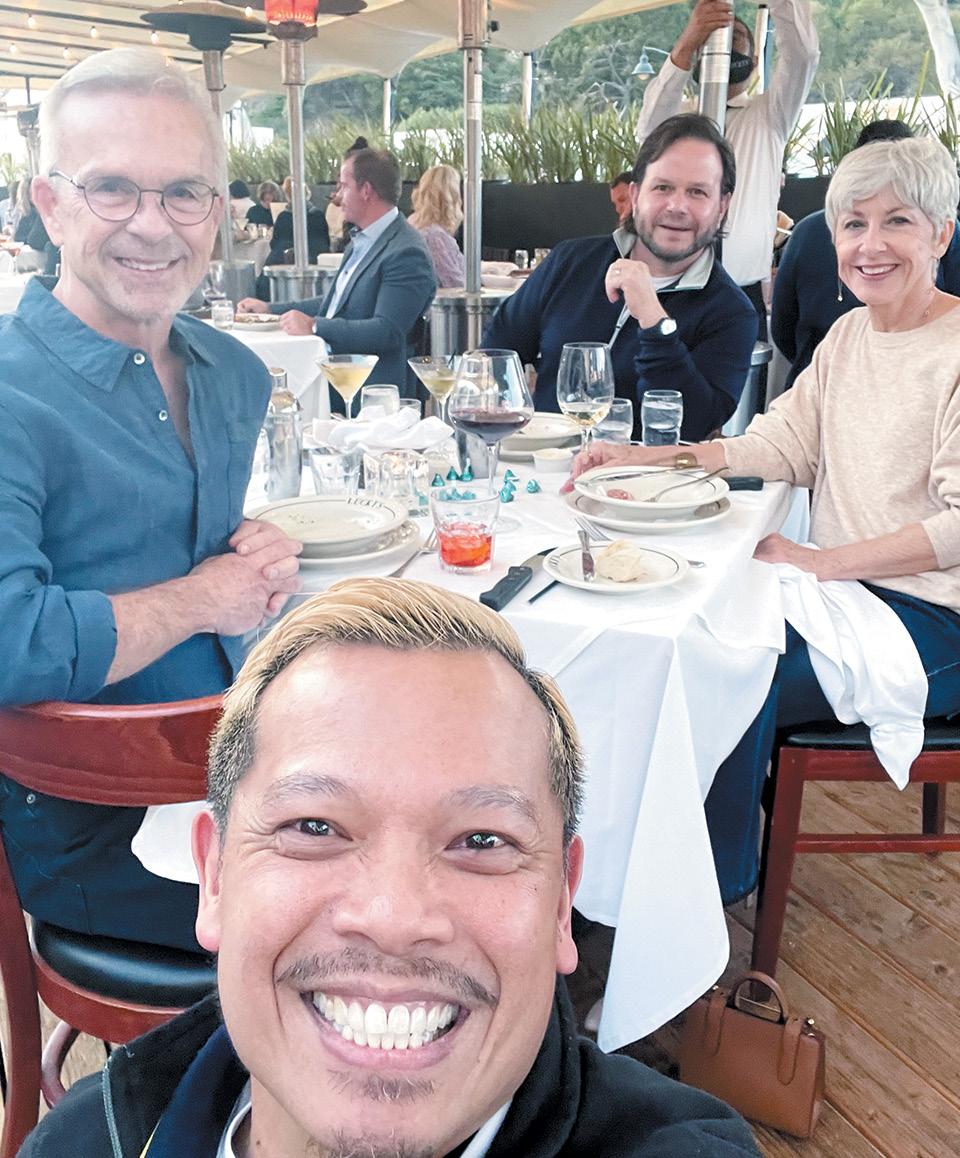 When you have a two-syllable name like “Jeff Wing” – the phonic equivalent of someone stepping off a rain-soaked curb in slippers – it’s inevitable you will be seated across the table from a Houghton Hyatt , say. Some spoken names are lyrical phrases one breathes like a melody. “Hello, I’m Houghton Hyatt.” “Oh, hullo there. I’m JEFF! WING!” All the beautiful people at the table have names like Reynolds Price characters: Cathy Cash (hostess of the table), Houghton Hyatt (Executive Director of the Montecito Association!), Tony Morris (Executive Director of the Rona Barrett Foundation), Brenda Blalock , Suzi Schomer (SVP Wealth Analyst MB&T), Leslie Haight , the fab Janet Garufis (MB&T Chairman & CEO).