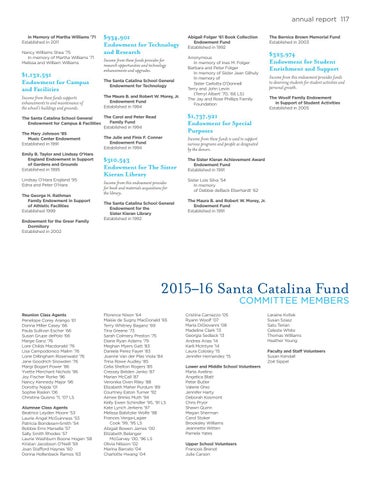 The Carol and Peter Read The Santa Catalina School General Endowment for Campus & Facilities Family Fund Established in 1994 The Mary Johnson ’85 Music Center Endowment Established in 1991