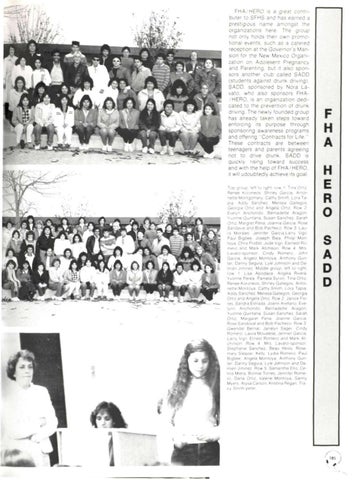 FHA/HERO is a great contributer to SFHS and has earned a prestigious name amongst the organizations here. The group not only holds their own promotional events, such as a catered reception at the Governor's Mansion for the New Mexico Organization on Adolesent Pregnancy and Parenting, but it also sponsors another club called SADD (students against drunk driving). SADD, sponsored by Nora Lavato, who also sponsors FHA/HERO. is an organization dedicated to the prevention of drunk driving. The newly founded group has already taken steps toward enforcing its purpose through sponsoring awareness programs and offering "Contracts for Life." These contracts are between teenagers and parents agreeing not to drive drunk. SADD is quickly rising toward success and with the help of FHA/HERO, it will udoubtedly achieve its goal. Top group, left to right, row 1: Tina Ortiz. Renee Koroneos. Shirley Garcia. Antoinette Montgomery. Cathy Smith. Lora Tape. Addy Sanzhez. Melissa Gallegos. Georgia Ortiz and Angela Ortiz, Row 2: Evelyn Anchondo. Bernadette Aragon. Yvonne Ouintana. Susan Sanchez. Sarah Ortiz. Margret Pena, Joanna Garcia. Rose Sandaval and Bob Pacheco. Row 3: Laura Morales, Jennifer Garcia. Larry Vigil, Paul Big bee. Joseph Biea. Philip Montoya. Chris Probst, Jude Vigil. Earnest Romero and Mark Atchison. Row 4: Mrs. Lavato-sponsor. Cindy Romero. John Garcia. Angelo Montoya. Anthony Gunter, Danny Segura. Lyle Johnson and Damian Jiminez. Middle group, left to right, row 1: Lisa Apodaca. Angela Rivera, Yvonne Perea, Pamela Syron, Tina Ortiz, Renee Koroneos. Shirley Gallegos, Antoinette Montoya. Cathy Smith, Lora Tapia. Addy Sanchez. Melissa Gallegos, Georgia Ortiz and Angela Ortiz. Row 2: Janice Flores. Sandra Estrada. Joann Arellano. Evelynn Anchondo. Bernadette Aragon. Yvonne Quintana, Susan Sanchez, Sarah Ortiz. Margaret Pena, Joanne Garcia, Rose Sandoval and Bob Pacheco. Row 3: Gwendal Bernal, Janalyn Sager, Cindy Romero, Laura Moualese. Jennier Garcia. Larry Vigil. Ernest Romero and Mark Atchinson. Row 4: Mrs. Lavato-sponsor. Stephanie Sanchez. Beau Heiss. Rosemary Salazar. Kelly. Lydia Romero. Paul Bigbee. Angela Montoya. Anthony Gunter, Danny Segura, Lyle Johnson and Damien Jiminez. Row 5: Samantha Elite. Celina Miera. Bonnie Torres, Jennifer Romero. Daria Ortiz, Valerie Montoya, Sanny Myers. Alysa Carson, Kristina Regan, Tracy Smith-peter.