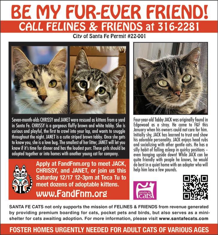 COFFEEVINTAGE PACK, PACK, SHIP SHIP & & MAILBOXES MAILBOXES FAST - RELIABLE - SECURE Last day to ship USPS priority before Christmas is Monday, Dec 19 Homemade breakfast burritos, specialty coffee and holiday shopping. Vintage clothing, jewelry, toys, records, turntables and more! 903 - 905 W Alameda St. Santa Fe NM 87501 www.thebetterday.us SFREPORTER.COM • DECEMBER 14-20, 2022 5 COURTESY WILDEARTH GUARDIANS