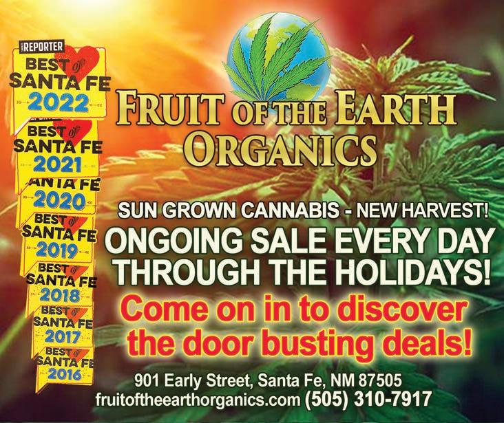 DECEMBER 14-20, 2022 • SFREPORTER.COM 32 check out weirdnews.info new online newspaper WE BUY DIAMONDS GOLD & SILVER GRADUATE GEMOLOGIST THINGS FINER Inside La Fonda Hotel 983-5552 I LOVE TO ORGANIZE Experience References Sue 231-6878 XCELLENT MACINTOSH SUPPORT 30+ yrs professional Apple and Network certified xcellentmacsupport.com Randy • 670-0585 TEXTILE REPAIR 505.629.7007 COMPUTER SUPPORT Windows/Mac/ All things digital Patient & Competent 505-450-9300 TAKE YOUR NEXT STEP POSITIVE PSYCHOTHERAPY CAREER COUNSELING SAM SHAFFER, PHD 982-7434 www.shafferphd.com DIAMONDS AND GOLD WE BUY AND SELL SILVER • COINS JEWELRY • GEMS TOP PRICES • CASH 3 GEMOLOGISTS ON STAFF Earthfire Gems 121 Galisteo • 982-8750 JUST EAST OF ALBUQUERQUE’S NOB HILL Quirky Used Books & More 120 Jefferson St. NE 505-492-2948 ANNIVERSARIES 50 YEARS The Annihilator Meets The Doors Phil Esposito Breaks The Ice “Don’t Blame Me, I’m From Massachusetts” The Godfather acca.fun SFCC SWIM CLASS Join us Mon/Wed’s 7:05-7:55am Sign up @ wendy.leighton@sfcc.edu LUNA TRANSFORMATIONAL SPIRITUALITY Psychic Readings Spiritual Counseling Herbal Medicine lunahealer.com DEADLINE 12 NOON MONDAY ROBYN@SFREPORTER.COM • 505-988-5541 BASE PRICE: $25 (Includes 1 LARGE line & 2 lines of NORMAL text) CUSTOMIZE YOUR TEXT WITH THE FOLLOWING UPGRADES: COLOR: $12/Line (Choose RED ORANGE GREEN BLUE orVIOLET) ADDITIONAL LINES: $10/Line | CENTERED TEXT: $5/AD BOLDED LINE:$10/Line | HIGHLIGHT $10 SFR BACK PAGE Refill • Beauty Bar 1925 Rosina st • unit h • santa fe, nm • (505) 772 -0644 OUR MISSION: REDUCE SINGLE USE PLASTIC WASTE. LOST PADRE RECORDS New/Used Vinyl & Tapes Buy • Sell • Trade 131 W. Water Street O COME, ALL YE MOVIE BUFFS video library 839 p de p 983-3321 fri-mon 12-6pm 1 4 3 4 CERRILLOSRD., SANTA FE , N M 87505 (ParkinginRear) 50598242 0 2 Card Holders Discount Locally Blown Glass Pipes! Vaporizers Rolling Papers Detox and Much more! when you mention this ad 10% OFF redhousesmokeshop.com RED HOUSE SMOKE SHOP RED HOUSE SMOKE SHOP