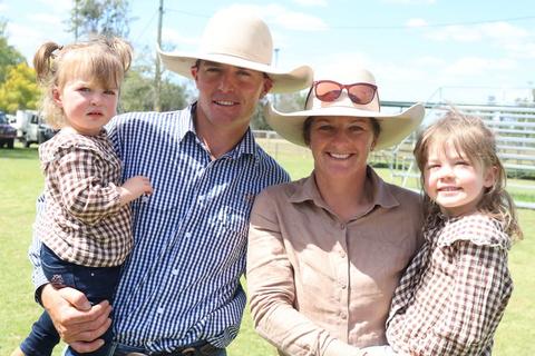 SamandEliseOsborne,Dulacca,withdaughters MaddieandMilla,enjoyedlookingovertheSanta bullsattheDawsonValleysale,Taroom