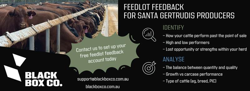 SantaGertrudis FeedlotTrial returnsin2026 We’reexcitedtoconfirmthatSanta GertrudisAustraliawillrunafeedlottrial nextyear,hostedonceagainbythe outstandingteamatPakaderinga Feedlot,Kingaroy.