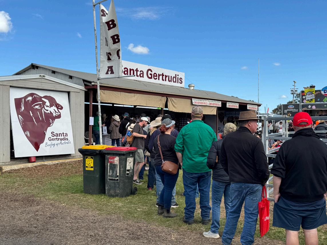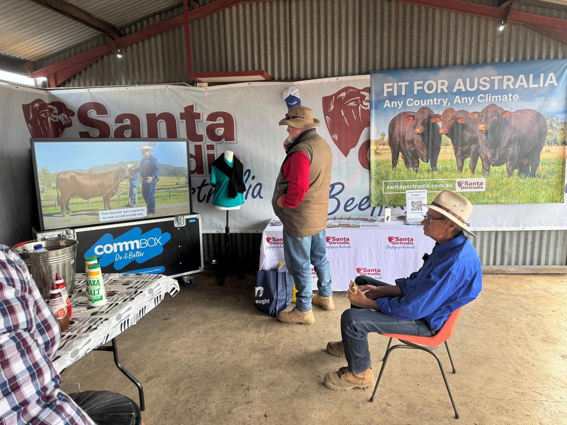 Whilesomeofourmembersinthe districtwereshowcasingquality AustralianredmeatwithSanta Gertrudisstudsalesunderway,other membersvolunteeredtosellthesizzle withoursucculentgenuinegrainfed SantasteaksfromTeysAustralia.