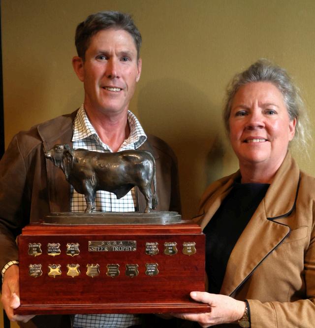 CongratulationstoPeter&Nikki Mahony,GyrandaSantaGertrudisStud, fortakingoutthe2024EddieHackman SteerTrophy,awardedtothoseSanta GertrudisAustraliamemberswhofinish thecalendaryearonthehighestpoints forunledandledtradesteerclasses andequivalentcarcaseclasses.