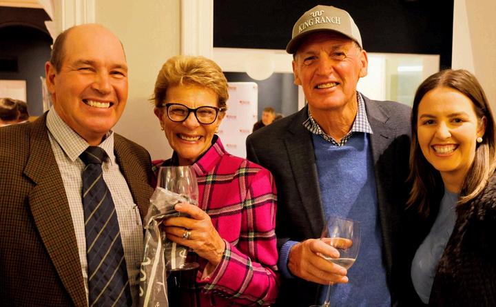 IanandLouiseMacCue(centre)celebrate securingtheKingRanchcapandbandanawith AndrewDoeringandMiaDoering