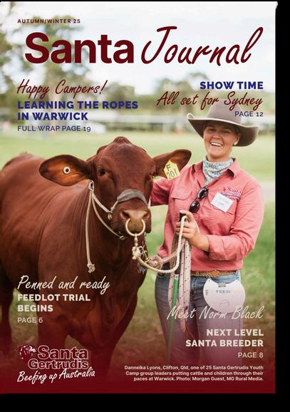 Amulti-pagewrap-upofthepopular eventisthecentrepieceofthismonth’s edition,whichalsoincludesapreviewof thisweek’sSydneyRoyalEasterShow featurebreedshowcase,anin-depth interviewwithentrepreneurandSanta GertrudisbreederNormBlackanda colourfulfeatureonanewSantaGertrudis ‘paddock-to-plate’venturethat’staking offincentralwestNSWthankstomembers PeterandOliviaAtkinson.