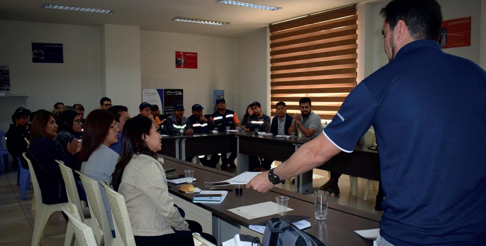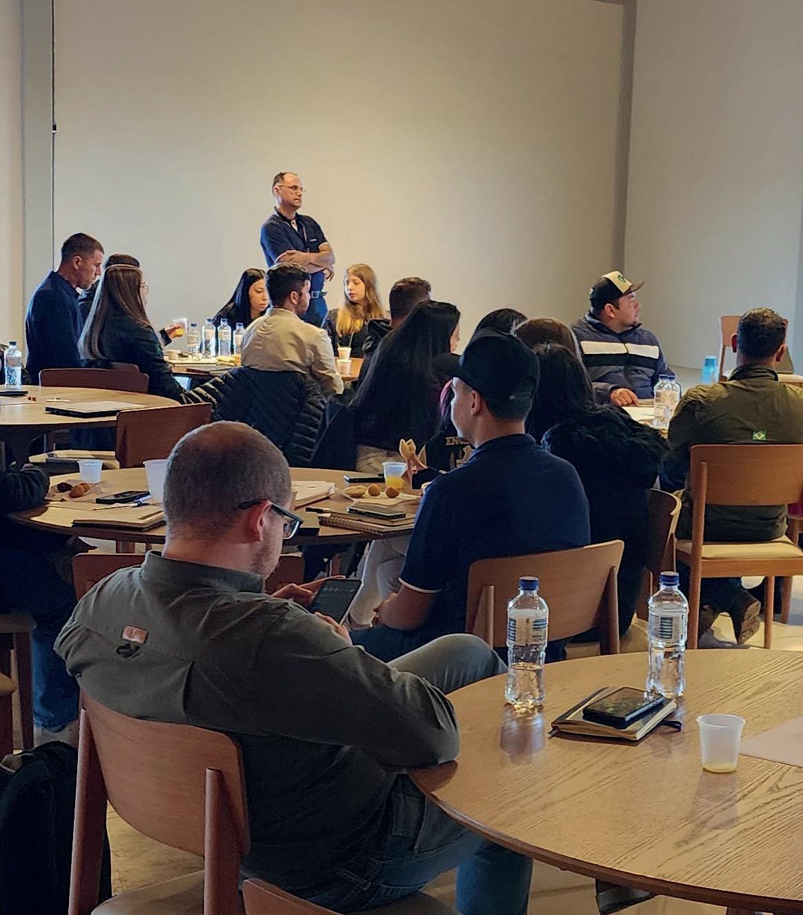 na fábrica de nosso principal cliente do País, o grupo La Papelera, que compra nossos papeis para sacos de farinha e carvão, envelopes de chá e também para cadernos e agendas. Na parte da tarde, reunimos os demais clientes de Cochabamba, La Paz e Santa Cruz de la Sierra no hotel Grand Cochabamba, que se deslocaram para prestigiar a empresa e aprender mais sobre nossos produtos. O encontro foi seguido por um happy hour com os 40