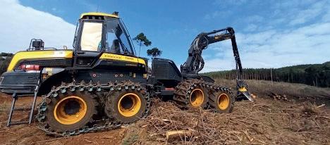investido em tecnologias inovadoras e em métodos mais sustentáveis. Dentre as soluções emergentes, destacamse os sistemas de colheita por cabos com guinchos, que utilizam polias para transportar a madeira de forma controlada, reduzindo o impacto no solo. Esses sistemas acesso, onde o uso de veículos pesados é inviável.