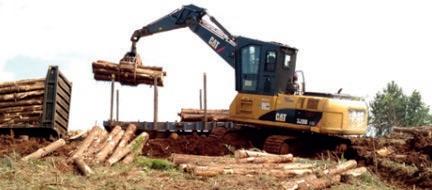 Operando 24 horas por dia, responsável pelo abate e processamento das árvores.