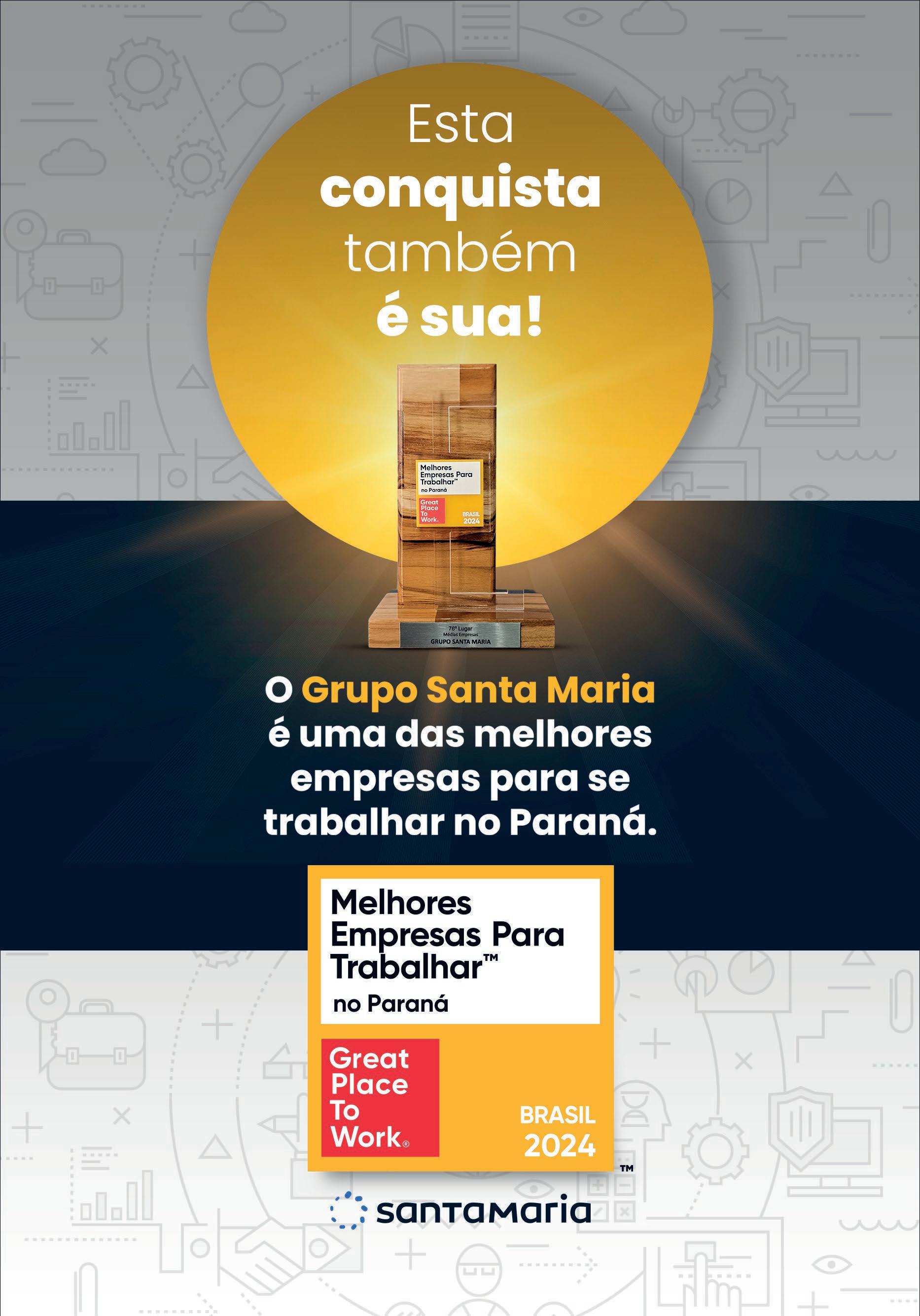 No dia 05 de novembro, o Grupo Santa Maria recebeu o troféu “Melhores Empresas para se Trabalhar no Estado do Paraná”.