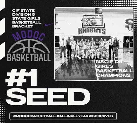 The Lady Braves secured the No. 1 seed in the CIF Division 5 Girls Basketball State Playoffs bracket. With a postseason victory on the line, Modoc rose to the challenge Saturday, cruising past the Durham Trojans 6625.
