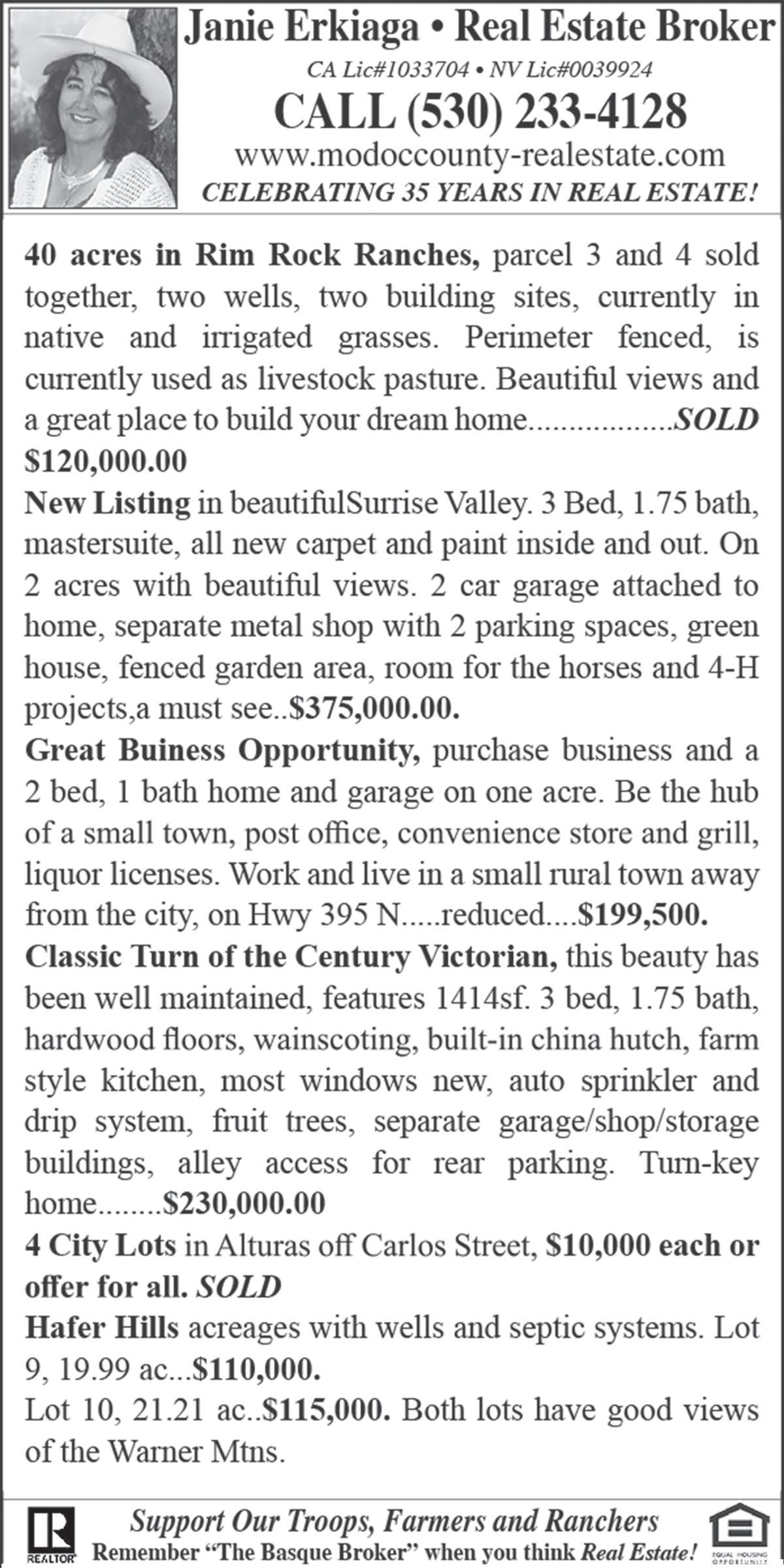 $10.00 for each standard classified ad up to 35 words. PAYABLE IN ADVANCE. Standard ad is first two lines bold. Classifieds also appear on our website • CALL (530) 233-2632 • EMAIL: alisha@modocrecord.com
