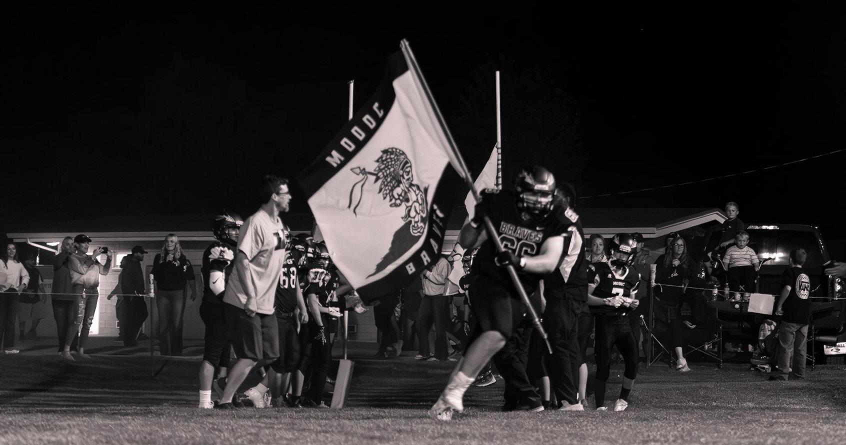 COACH C. ELLIOTT’S Modoc football team bet Lakeview 15-0 Saturday. The Braves are unbeaten and have only been scored on once this year. Fact is that Elliott’s team has not lost a football game since Lassen beat us 12-0 in the 1935 season.