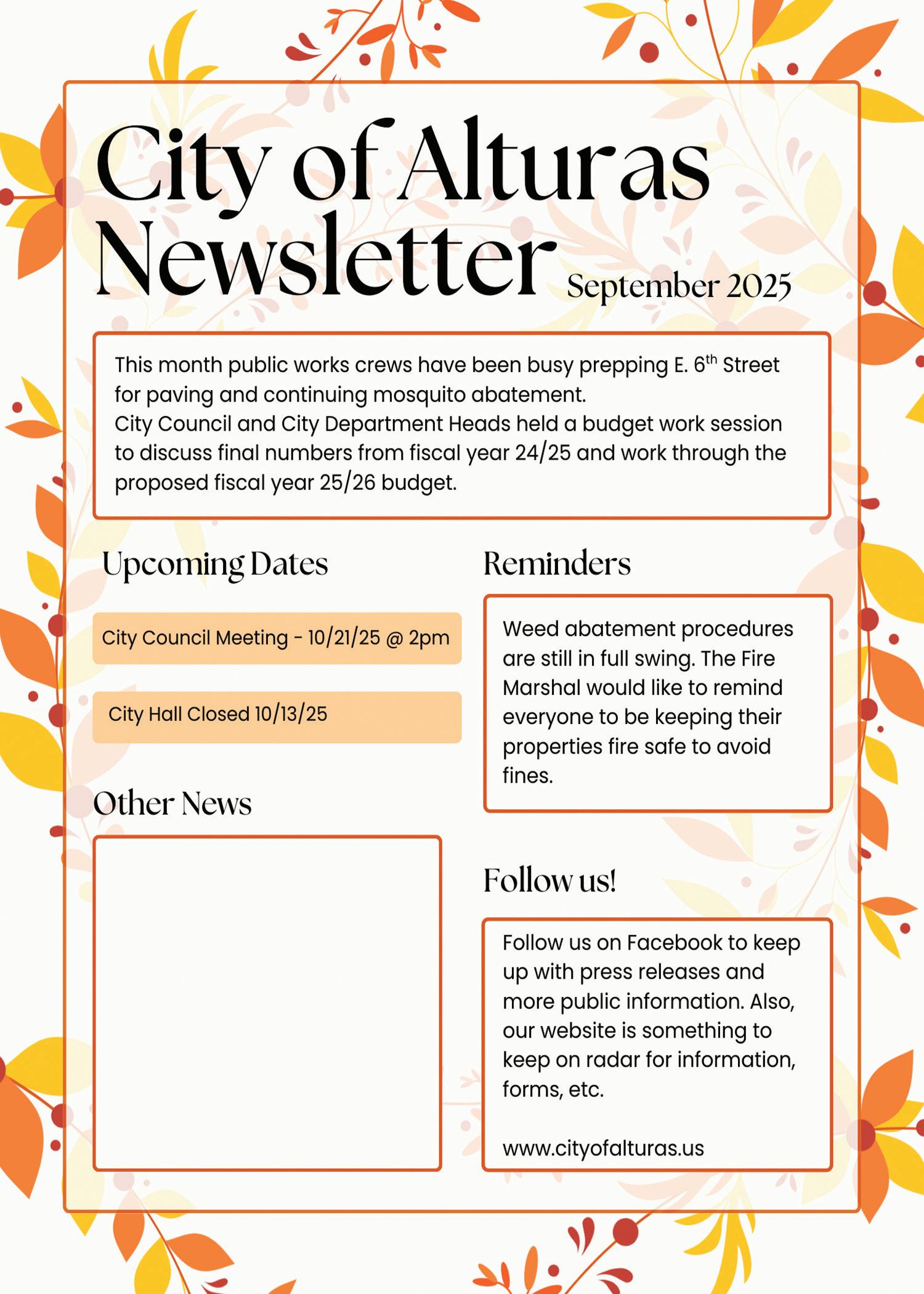 The Modoc County Transportation Commission (MCTC) will convene their regular meeting at 1:30 p.m., or soon thereafter, Tuesday 10/07/25 by teleconference – call (480) 885-2252 ID# 926 523 763 or in person at Sage Stage 108 S. Main St. Alturas, CA. The MCTC will consider approving or adopting the following items: approval of the 08/05/25 regular meeting minutes, the financial reports from 07/01/25, through 08/31/25, and expenditure reports. 1:30 or shortly thereafter Public Hearing 2025 Final Regional Transportation Plan and discuss the Alturas CAPM project. Caltrans, Alturas Public Works Department, Modoc County Road Dept. and MCTC will also provide agency updates to the Commission. Agenda and staff reports are available at the MCTC office, 108 S. Main Street in Alturas, or via MCTC’s website at modoctransportation.com. Contact MCTC staff at (530) 233-6410 with questions or comments.