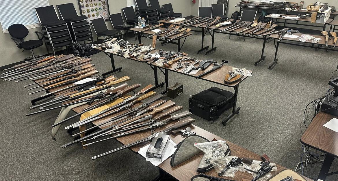 The Modoc County Sheriff’s Office says deputies recovered more than 100 firearms, stolen property and narcotics during a sweep of four locations in Surprise Valley.