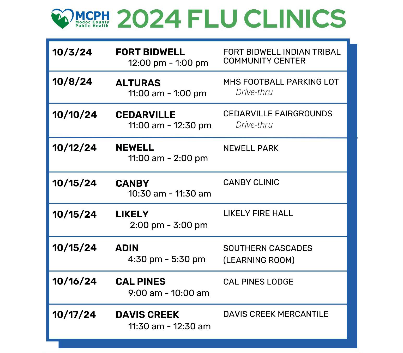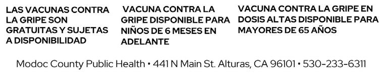 Special Requirements: Possession of an appropriate California Driver’s License issued by the California Department of Motor Vehicles. Miscellaneous Information: The ideal candidate for this position will be fluent in English and Spanish. Submit a completed Modoc County job application and resume to the Public Health Department at 441 N Main Street, Alturas, CA or via email to tanyaschulz@co.modoc. ca.us by 6 p.m. on 10/24/24. For further information please contact Tanya Schulz or Cheyenne