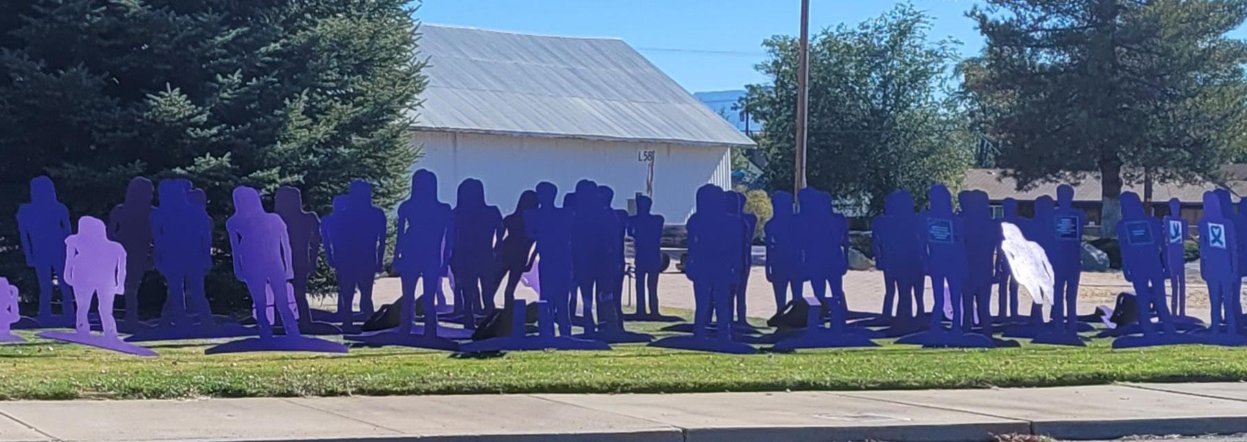 On Monday, Main Street in Alturas was lined with 88 purple figures in the lawn next to Plumas Bank. The display, organized by the Modoc Crisis Center, represents the 80 women and 8 men who reported domestic violence incidents to the center in 2023.