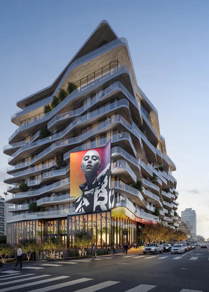 Creek Development, will replace the existing storefronts at 8850 Sunset Boulevard with a mixed-use building featuring a 90-room hotel, 78 residential units, and 28,000 square feet of restaurant, café, and bar space. Sixteen of the apartments will be designated as affordable housing.